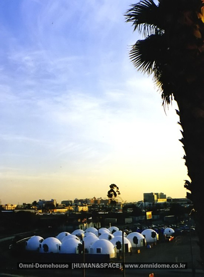 Omnidome House that is made with F.R.P material, which can simultaneously solve the problem of tentative housing and permanent housing, and it is an epoch-making house that can be built and disbanded within 3 to 4 hours.