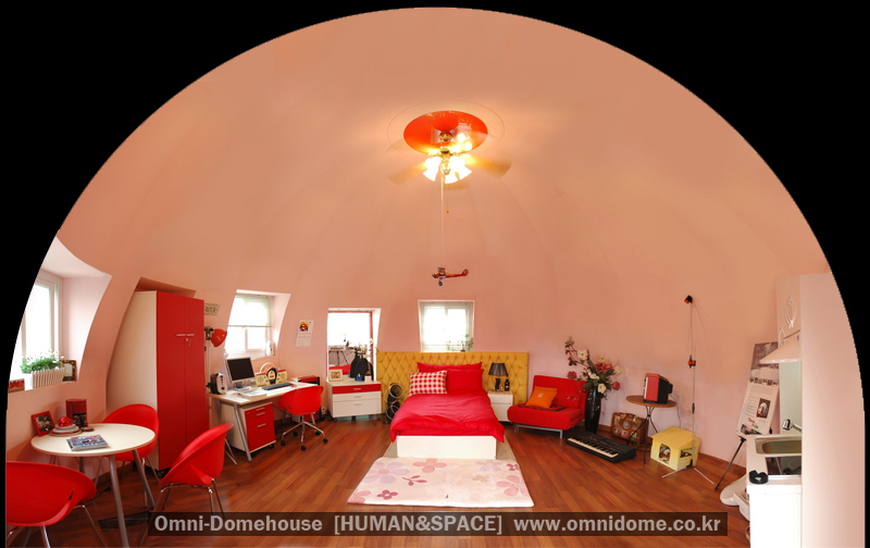 5. With the characteristic of dome shape, it can increase energy efficiency of air conditioning and heating due to convection application of indoors atmosphere (60% of air conditioning and heating bill deducting effect compared to squared-spaced housing)