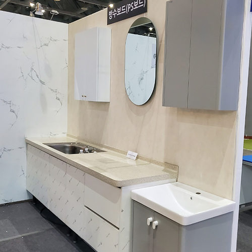 The waterproof wall panel is a popular alternative to tiles in Korea. It comes in wide sheet formats, is lightweight, easy to install, and is currently one of the most in-demand finishing materials in the Korean market.